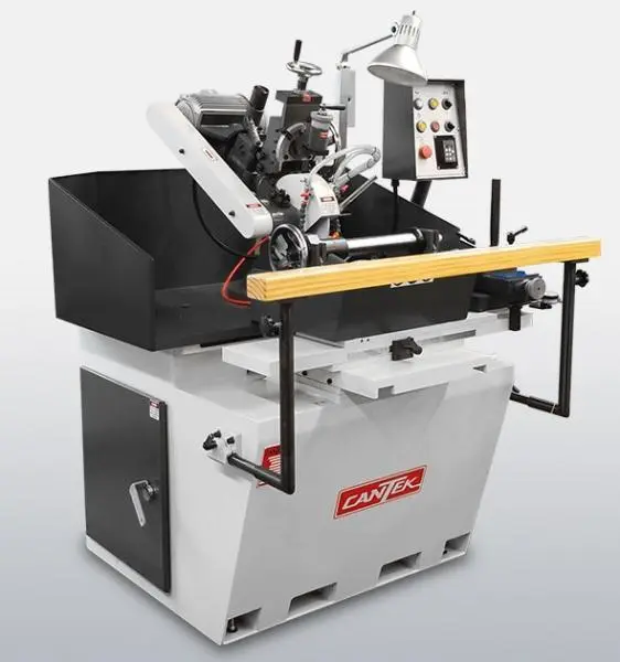 The Cantek JF330A Profile Grinder was designed to ensure the operator can produce an optimum knife finish, while producing precisely accurate profiles. The VFD allows the operator to dial in the optimum grinding speed no matter what type of knife steel they are grinding. Using an axial constant setup, tools can be transferred to the moulder quickly for precise and fast changeovers. The cutterhead is mounted to a sliding worktable which runs on high precision Schneeberger linear bearings.