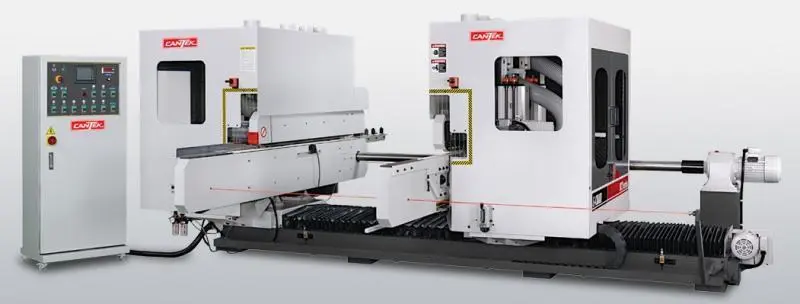 The Cantek ECT Series Double End Tenoners are robustly built for the most demanding applications. They are available with up to (8) spindles (4-per side) and come in widths from 51” to 141”. These double end tenoners are ideal for door, furniture, & window production and more. The ECT series can be customized for your specific needs with a wide range of processing units and features. The ECT are available as a stand-alone solution or can be purchased in a line for processing all four sides of a workpiece automatically.