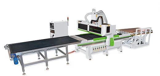 Nesting work for Automatic Infeed Loading with scissor lift and Outfeed Unloading with conyeyor Process