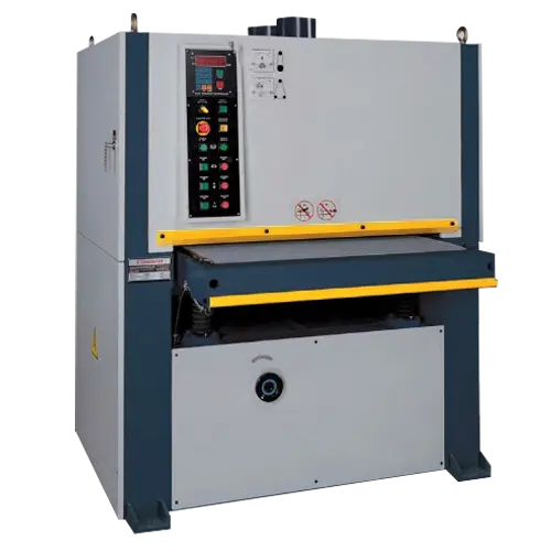 The abrasive belts are tracked by oscillating cylinders linked to the upper roller. The edge of the belt is detected by electric eye sensor which in turn controls the air supply to the position via solenoid value. One limit switch is located on each end of top roller of the sand paper for quick stop in case of the event of belt breakage.