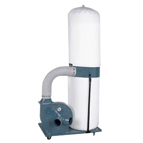 Larger size impeller and extra long top air exhaust bags enabling to collect sawdust and wood chips more easily.
