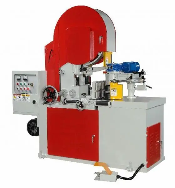 The saw wheels are laminated with rubber for accurate blade tracking and slippage prevention.