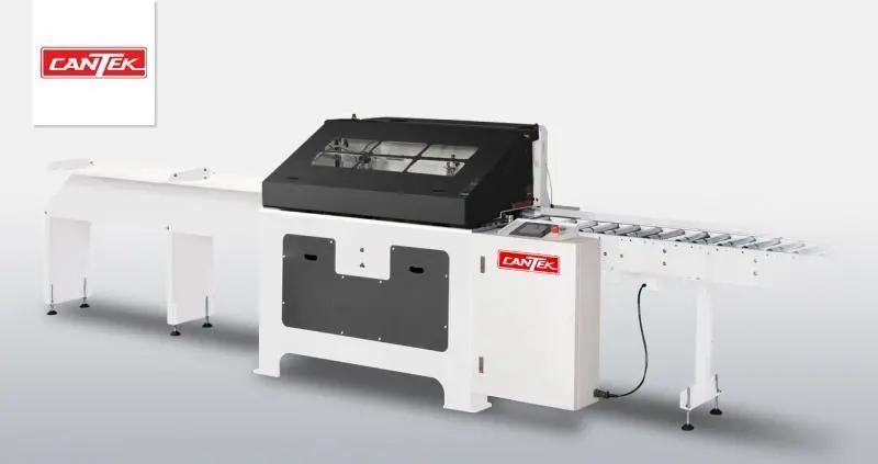 The Cantek EM12 End Matcher is specially designed for machining tongue and groove (with or without bevels) on hardwood flooring and wall/ceiling paneling up to 12” wide. Its compact design with continuous through feed system allows for maximum output in a small space. Equipped with a user-friendly touch screen interface allow for simple operation with excellent performance and error diagnostics. The dual counter-rotating cutterheads produce both the tongue and groove simultaneously ensuring a perfect match. The anti-tear-out blocks and counter rotation of the heads ensure optimum cut quality without chipping or blowout. The insert style segmented cutterheads can be adjusted according to your desired tongue / groove thickness and can perform a micro-bevel or not. The variable speed infeed conveyor, variable feed speed, and variable cross-cutting speed allow the operator full control according to the type and size of material being run. The innovative clamps allow for simultaneous top and side clamping to ensure pieces are perfectly square for consistent end matching results.