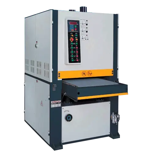 The abrasive belts are tracked by oscillating cylinders linked to the upper roller. The edge of the belt is detected by electric eye sensor which in turn controls the air supply to the position via solenoid value. One limit switch is located on each end of top roller of the sand paper for quick stop in case of the event of belt breakage.