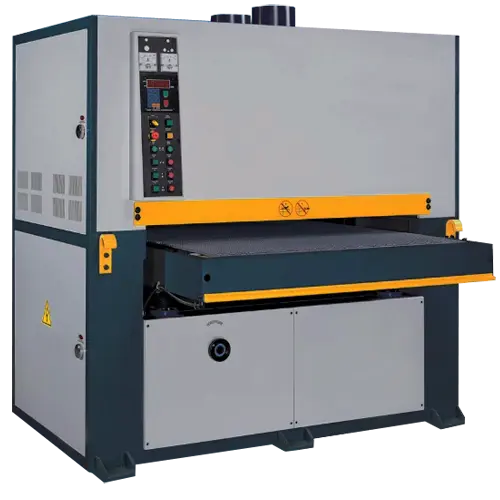 The abrasive belts are tracked by oscillating cylinders linked to the upper roller. The edge of the belt is detected by electric eye sensor which in turn controls the air supply to the position via solenoid value. One limit switch is located on each end of top roller of the sand paper for quick stop in case of the event of belt breakage.