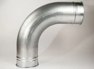 Available in galvanized only. They are constructed of stamped halves that are then welded with a continuous “stitch” weld that is accomplished by using an inner and outer welding wheel to complete continuous spot welds. The K&B rolled lip collar is spot welded to the elbow and a beader forms the metal so that the ends of the metal are out of the air stream.