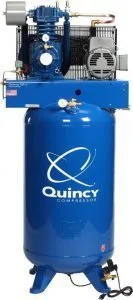 The Quincy QP is a two-stage pressure lubricated air compressor featuring a working pressure of 175 PSI for your more challenging air compression applications. Key QP features include a cast iron crankcase, flywheel and cylinder, reliable positive displacement oil pump and high efficiency intercooler. The QP is available in a “standard” configuration Pro Unit, as well as a “fully loaded” Max Unit.