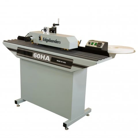 Safety Speed manufactures a Hot Air Edgebander that is small in size yet big in ability. The 60HA Edgebander features fingertip electronic variable speed control and digital electronic temperature control. A micro adjust tape guide for quick tape changes, electromagnetic end cutters, a pressure roller, and the accutrim edge trim system that eliminates the need to file or sand trim edges makes this unit a very dependable edgebanding solution . The innovative design of the 60HA makes it extremely easy to operate and the Made in USA assures quality that you would expect from us.