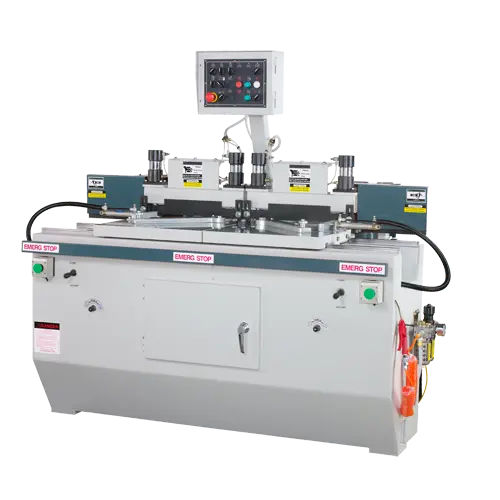 Fully automatic cycle function, just place the material against the stops, machine will automatic clamp, move in for shaping and drilling, come out and release the hold down.