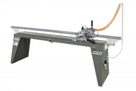 The DT-521 Stop Stitcher has been improved over similar model stitchers by automating the firing of the two staple or nail guns, and adding components to the machine that secure the stop. This helps achieve a more accurate placement of the stop on the jamb.