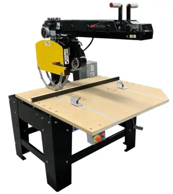 The 20″ Super Duty Radial Arm Saw is able to cut a respectable 6 ¼ ” deep in a single pass. It also has a 23”- 31″ crosscut capability, depending on the model. These massive 850-pound machines are made for the rigors of everyday industrial use.