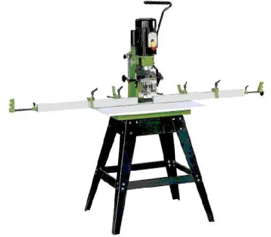 Fully adjustable fence system with easy-to-read scales in both inches and metric for quick setup and accurate boring.