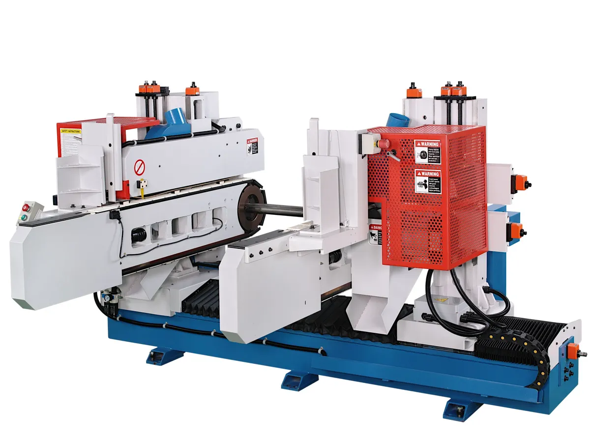 Castaly 4 Head 4' Double End Tenoner SET-44DET-SS is suitable for mass production in woodworking factory for processing of double end cutting, tenoning, grooving, moulding, and sanding.